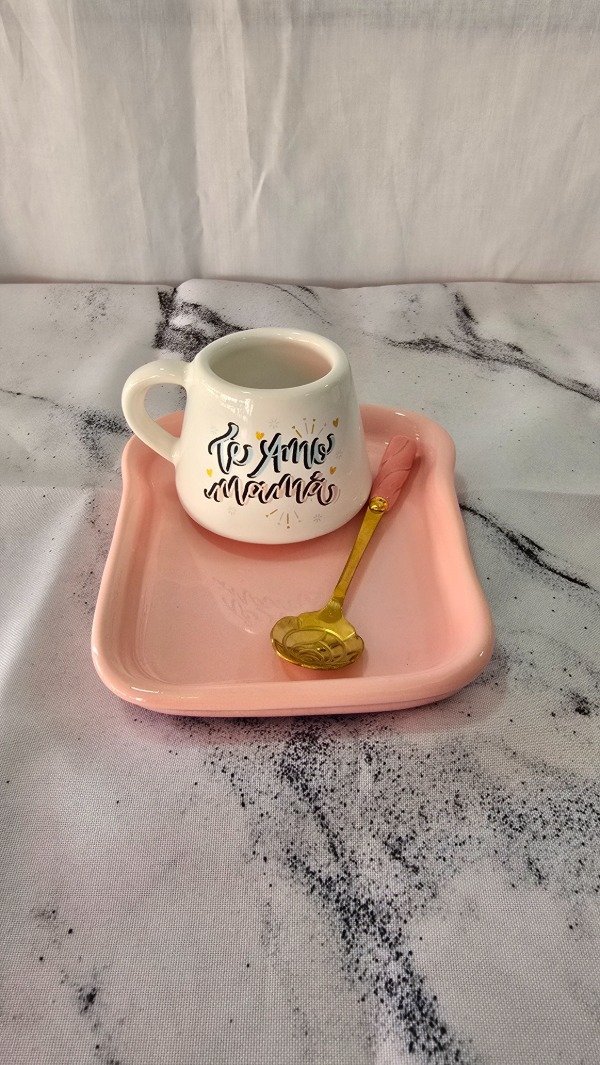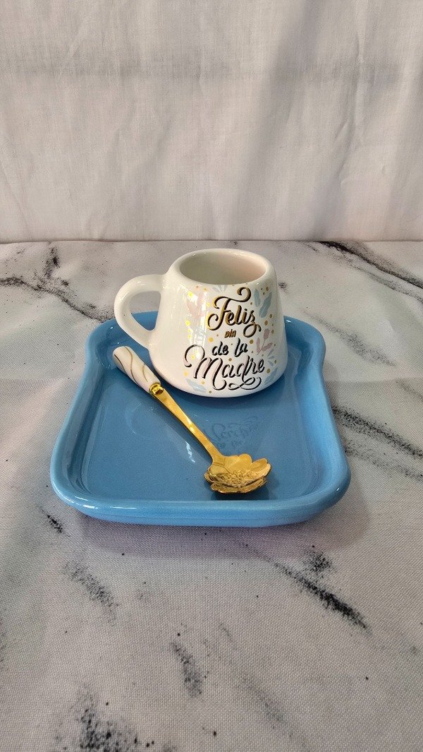 Contiene un pocillo, un plato tostada y una cucharita
